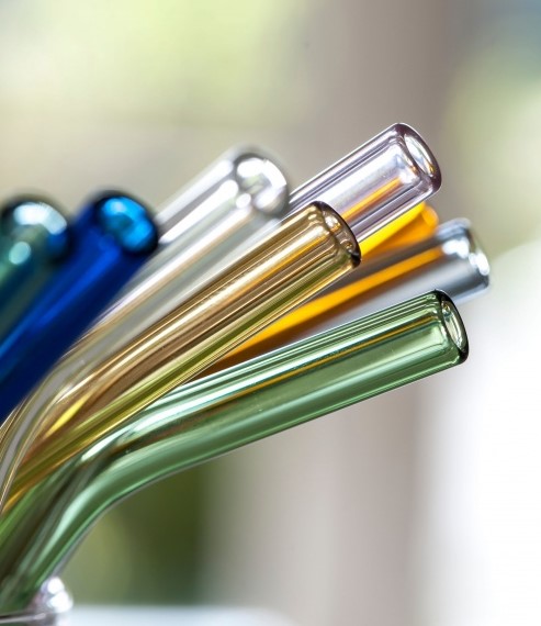 De fineste sugerør i 10 forskellige farver lavet i hærdet glas laves af skandinaviske Concept Zero.