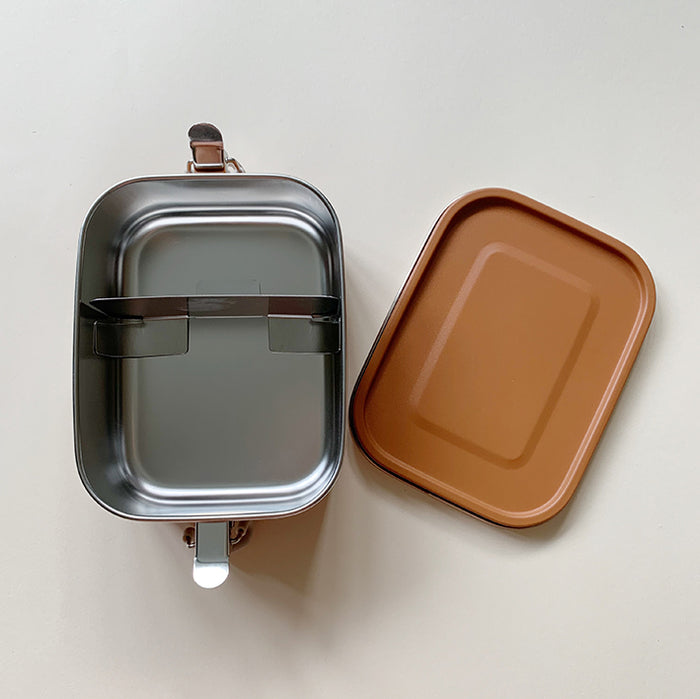 Madkassen er i rustfrit stål, mens låget er lavet i silikone.